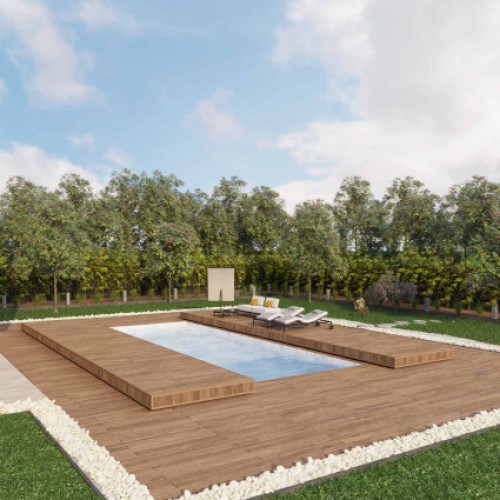 - Препятствует попаданию осадков в бассейн благодаря системе водоотведения, скрытой под террасной доской.