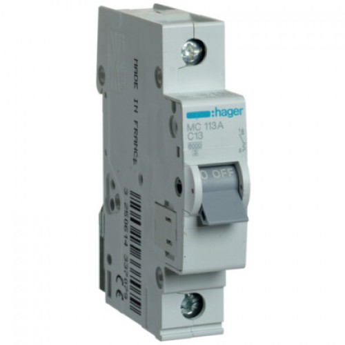 Автоматический выключатель Hager MC113A 1-полюсный, In=13 “C” используется для защиты кабелей и проводов от перегрузки и токов короткого замыкания. Монтируется на DIN-рейке в электрических распределительных щитках.Соответствует степени защиты IP20.