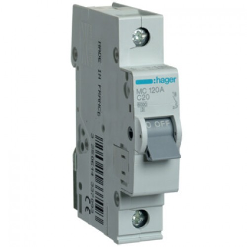 Автоматический выключатель Hager MC120A 1-полюсный, In=20 А “C” используется для защиты кабелей и проводов от перегрузки и токов короткого замыкания. Монтируется на DIN-рейке в электрических распределительных щитках.Соответствует степени защиты IP20.