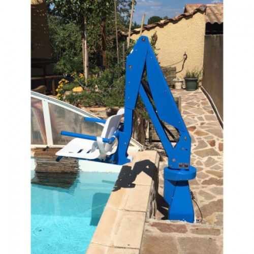 Подъемник для инвалидов F100M - фиксированный подъемник с механическим и автоматическим вращением позволяет человеку с ограниченными возможностями, пожилым людям или людям после травм безопасно, легко и комфортно спуститься в воду бассейна. Управление операциями поворота механической стрелы, опускания и подъема из воды осуществляется с помощью специального кнопочного пульта со спиральным кабелем. Настраивается в зависимости от типа бассейна и высоты. Подъемник должен быть обязательно закреплен на полу из железобетона с помощью 8 дюбелей или цементного цоколя размером 60x60x60 см.