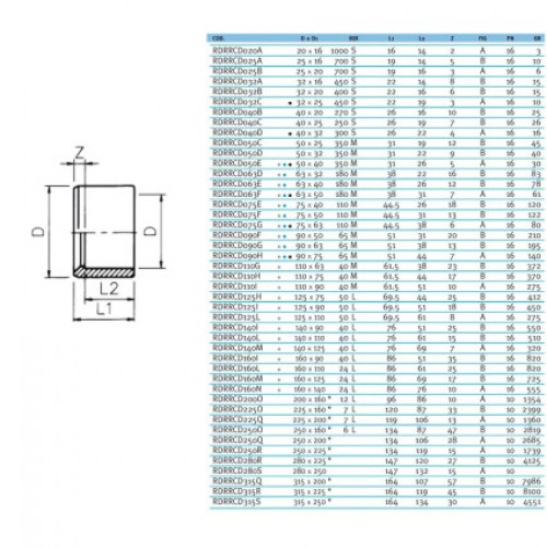 Редукционное кольцо ПВХ Effast RDRRCD из непластифицированного поливинилхлорида PVC-U. Производство Италия. Изделия из ПВХ подходят для транспортировки жидкостей с максимальной температурой до 60 °C. При увеличении температуры рабочей жидкости предельное давление снижается.Цена указана за одну единицу.